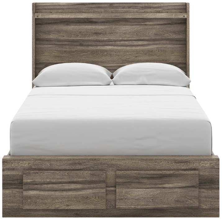Rest in the casually cool style of this full panel storage bed. A weathered brown finish and chill LED lighting create an easygoing vibe, setting the scene in your restful retreat. Spacious drawers underneath provide plenty of storage. The bed's clean-lined design provides a fuss-free look.Read More