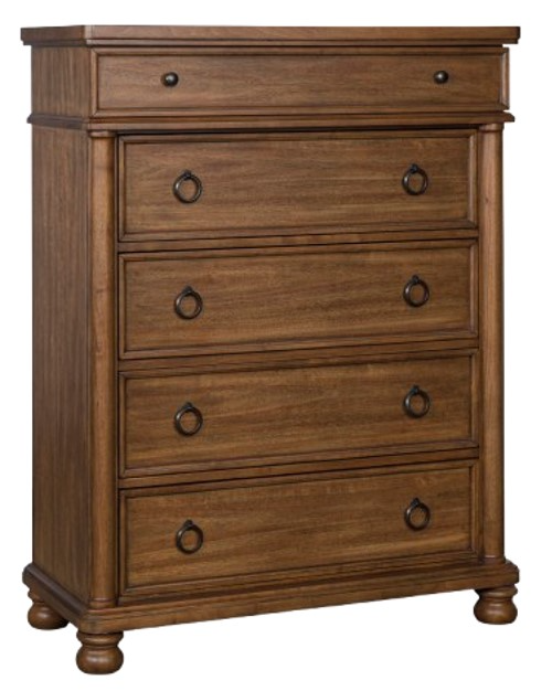 Taking a laid-back approach to casual traditional design, this artfully crafted chest of drawers combines classic elements with a clean modern approach. Its rich medium brown wood tone exudes a comfy, timeless appeal that's sure to carry you away to a dreamy time and place.Read More