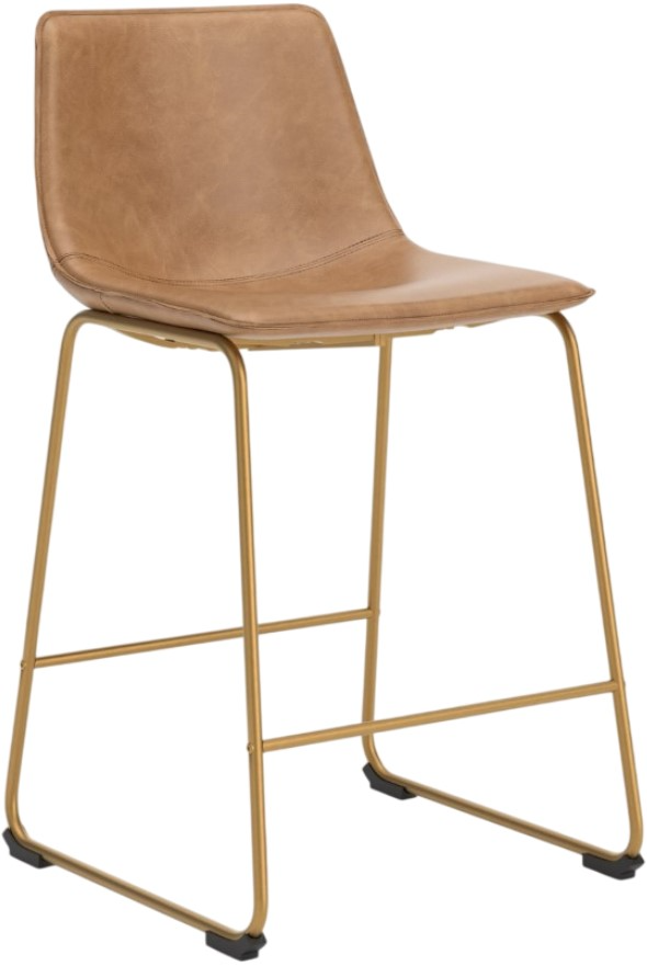 Features a toast colored faux leather