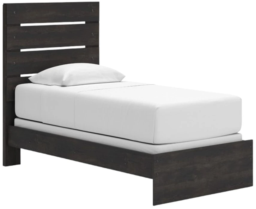 This twin panel bed puts a casually chic twist on everyday function. Its rustic charcoal finish pairs well with other neutrals and pops of color alike, giving you the flexibility to change up your aesthetic as you please. From morning to bedtime, it completes your restful retreat in exceptional form.Read More